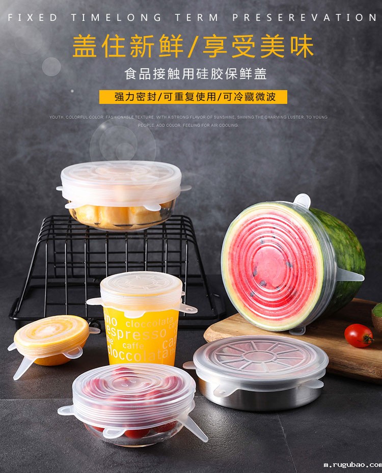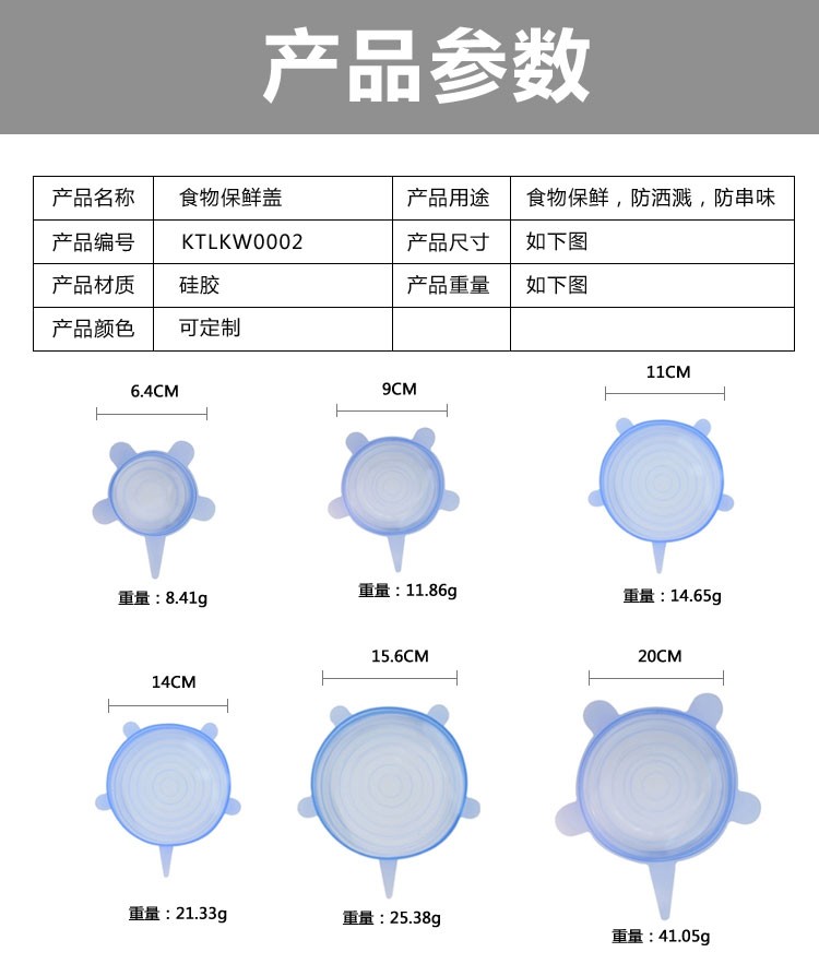 产品名称:可拉伸多功能硅胶保鲜盖六件套
