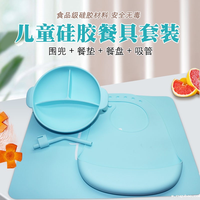 硅胶儿童餐具套装 宝宝硅胶餐盘 一体式儿童餐具婴幼儿辅食吸盘碗