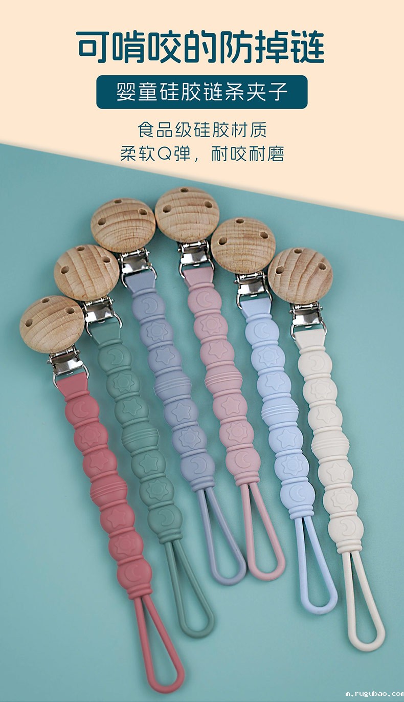 新款安抚奶嘴链硅胶奶嘴链宝宝奶嘴咬咬牙胶婴儿车奶瓶挂绳链