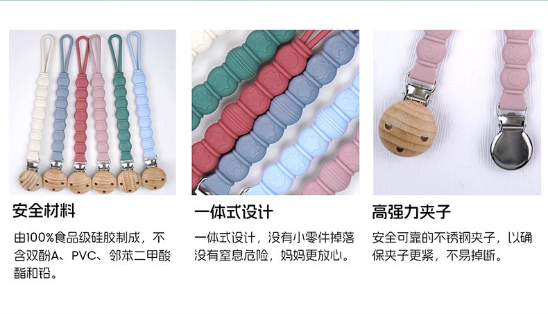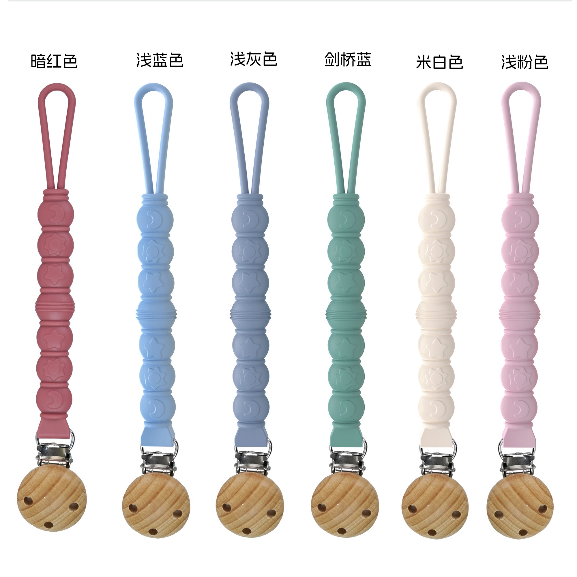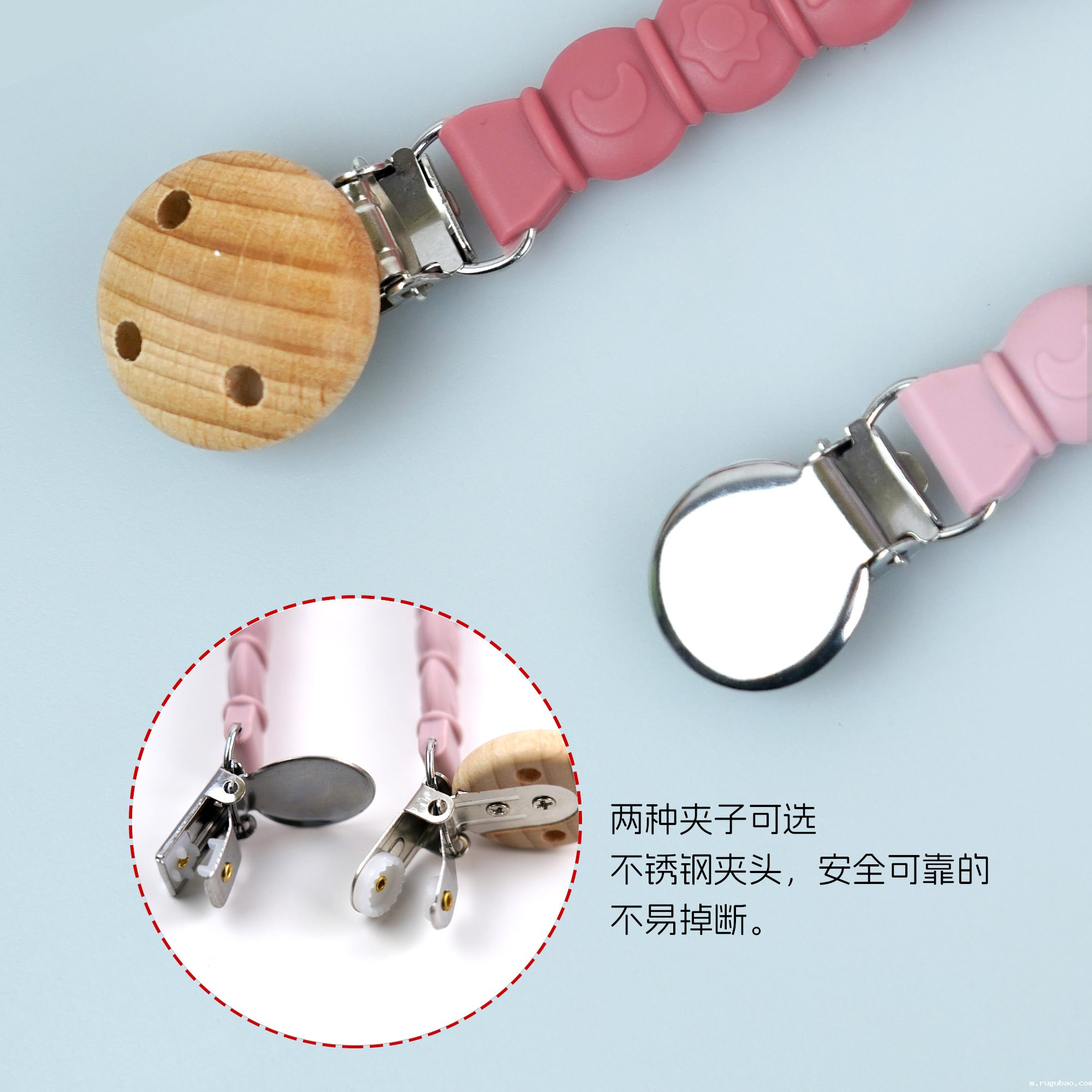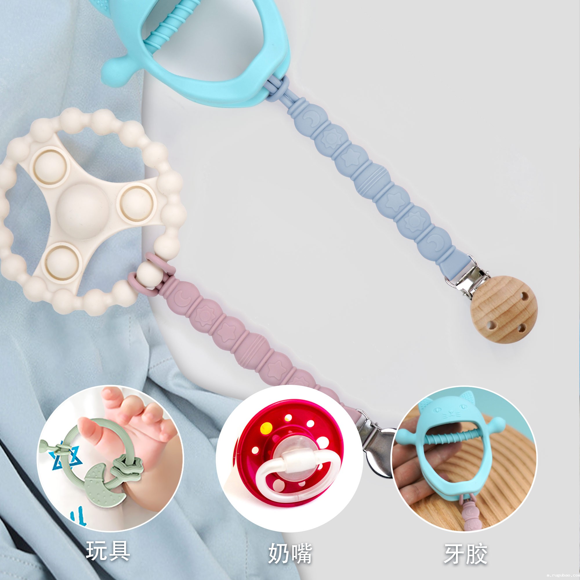 跨境安抚宝宝牙胶 防掉链硅胶奶嘴链 婴儿食品级可水煮防掉链牙胶