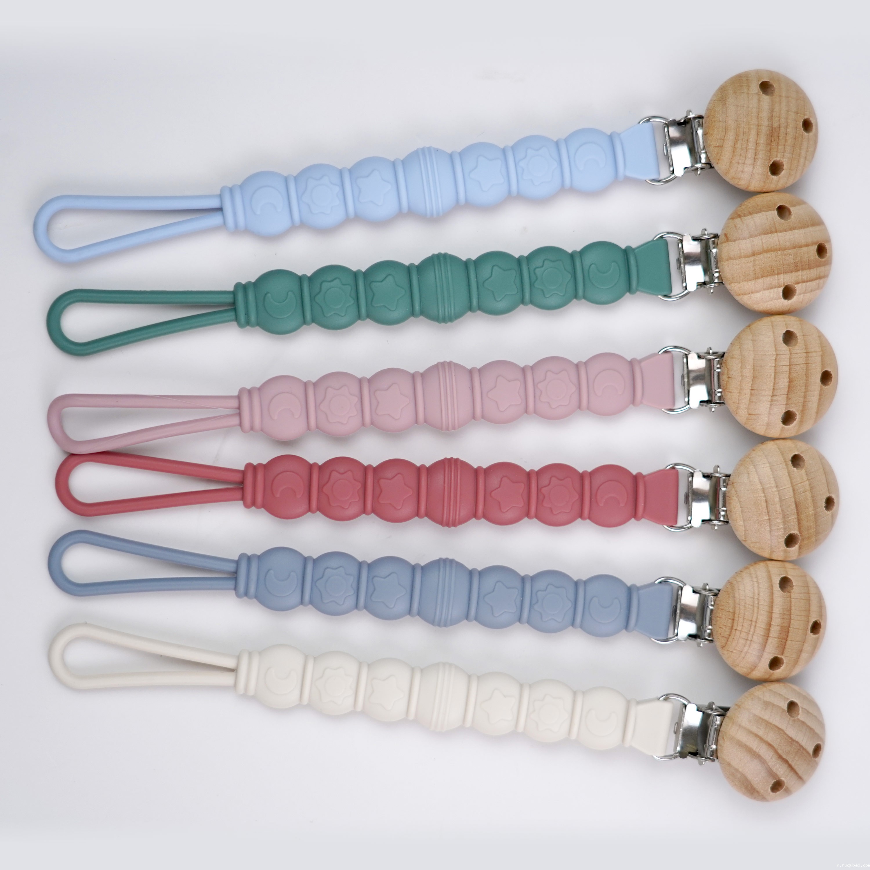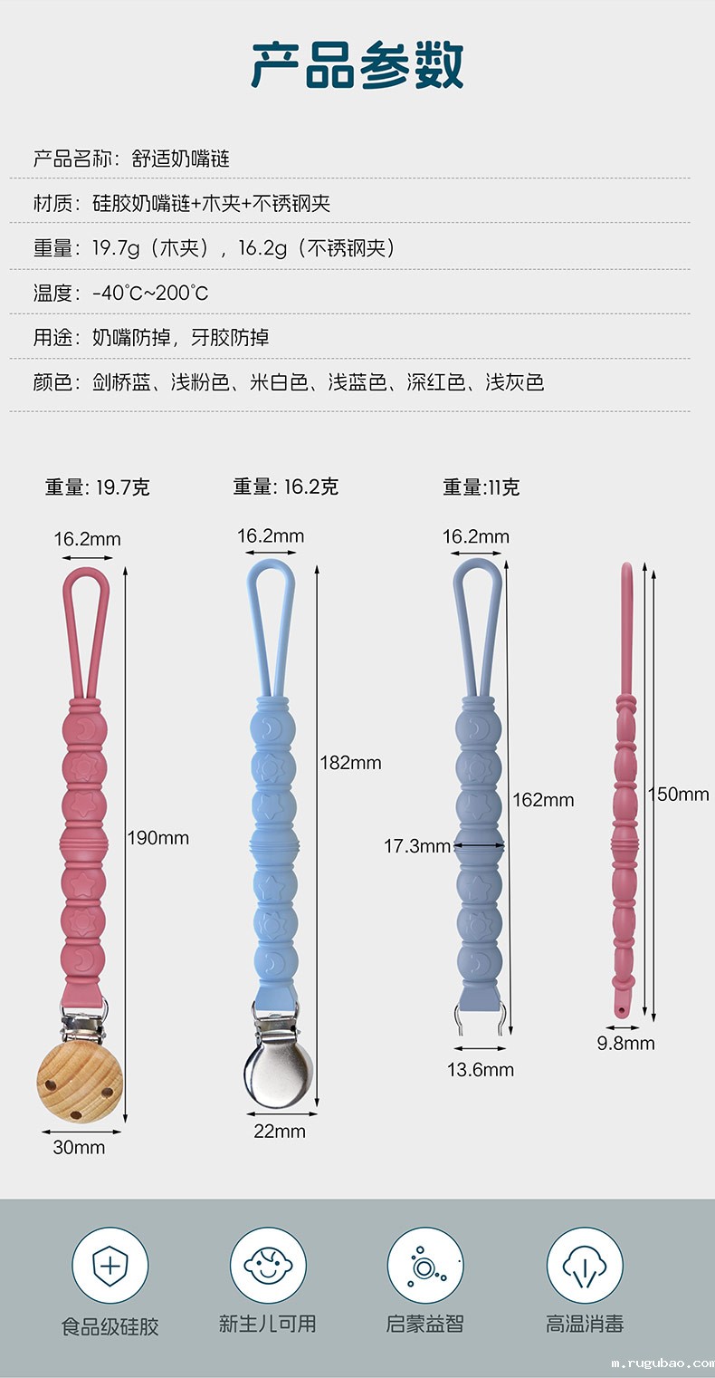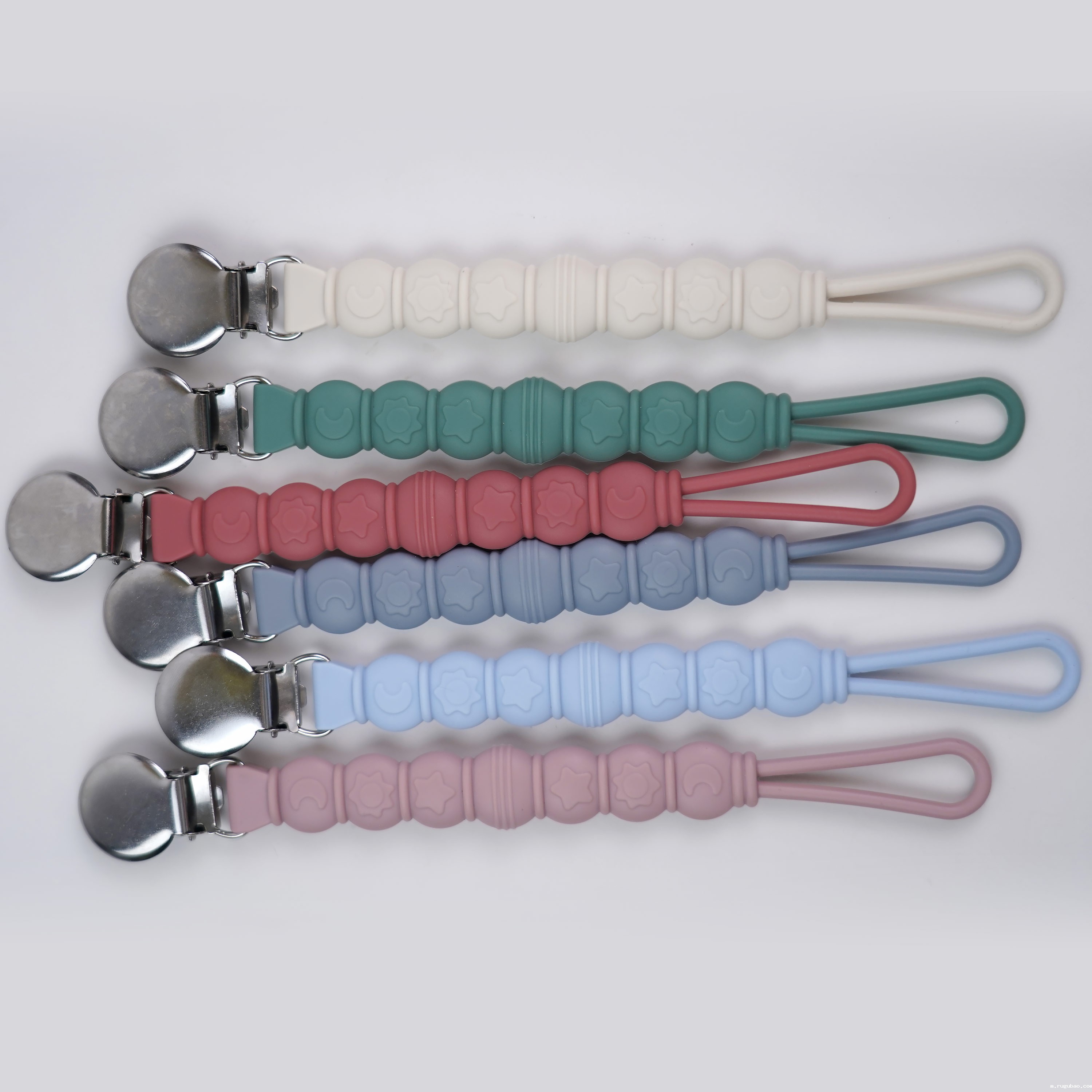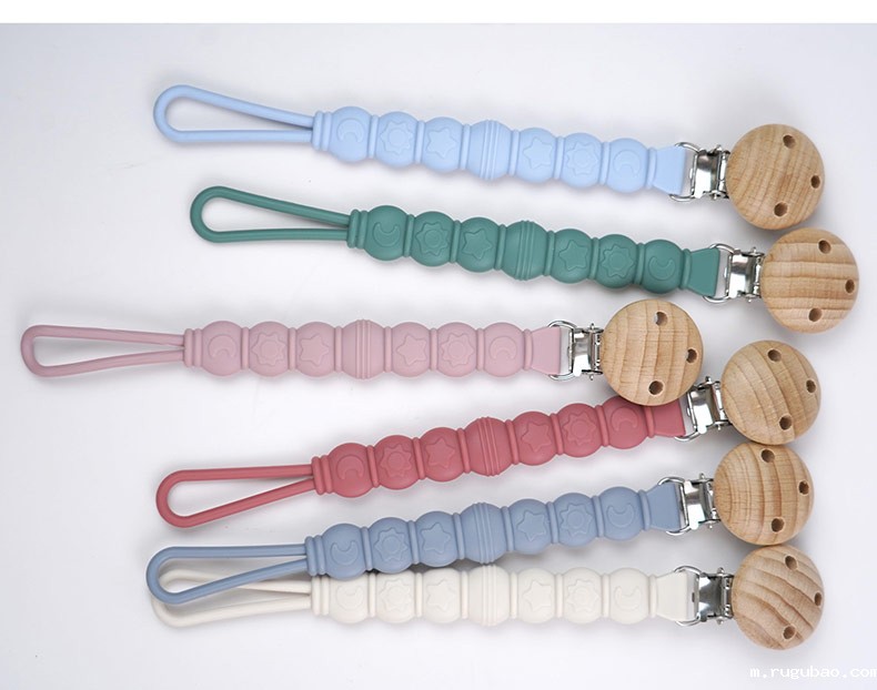 跨境安抚宝宝牙胶 防掉链硅胶奶嘴链 婴儿食品级可水煮防掉链牙胶