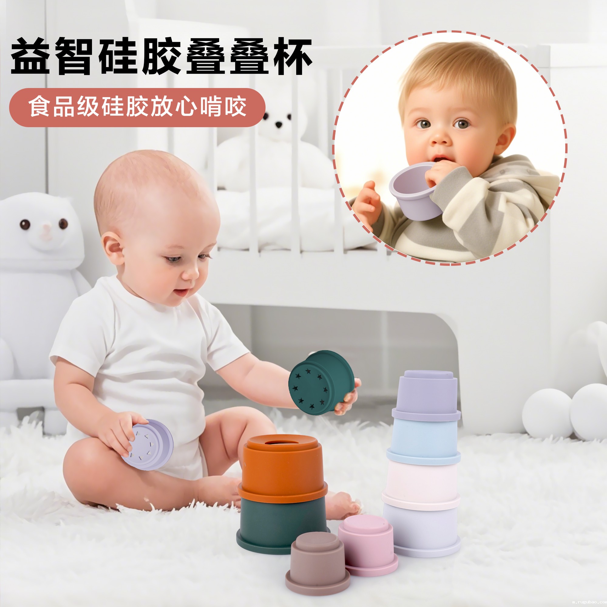 硅胶玩具硅胶叠叠杯互动玩具硅胶益智婴幼儿玩具儿童宝宝堆堆玩具