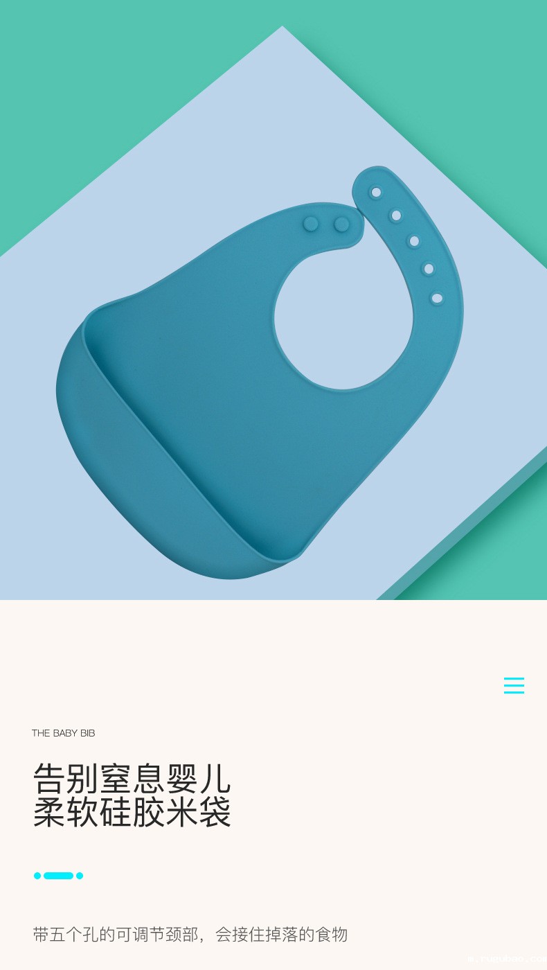科泰利所生产的硅胶围嘴兜,选用食品级环保原材料制作,材质可以信赖,它由bevictor伟德官网经过200多度高温加工成型,耐温防水防油,清洁方便,水冲即可,可以反复使用。而且硅胶围兜现在普遍采用3D立体设计,凹槽可以轻松兜住食物,这样的设计就是在存放的时候比棉质占空间。此外硅胶除了作为围嘴兜也一样可以做其他婴童硅胶制品。