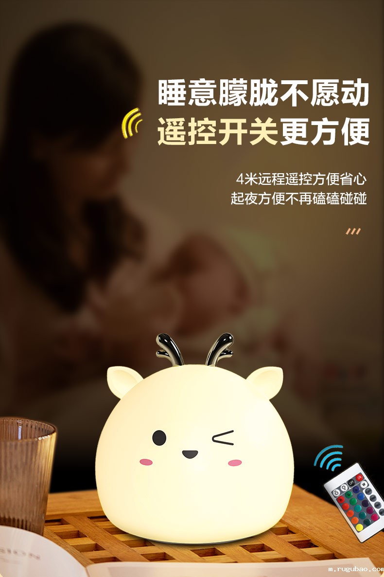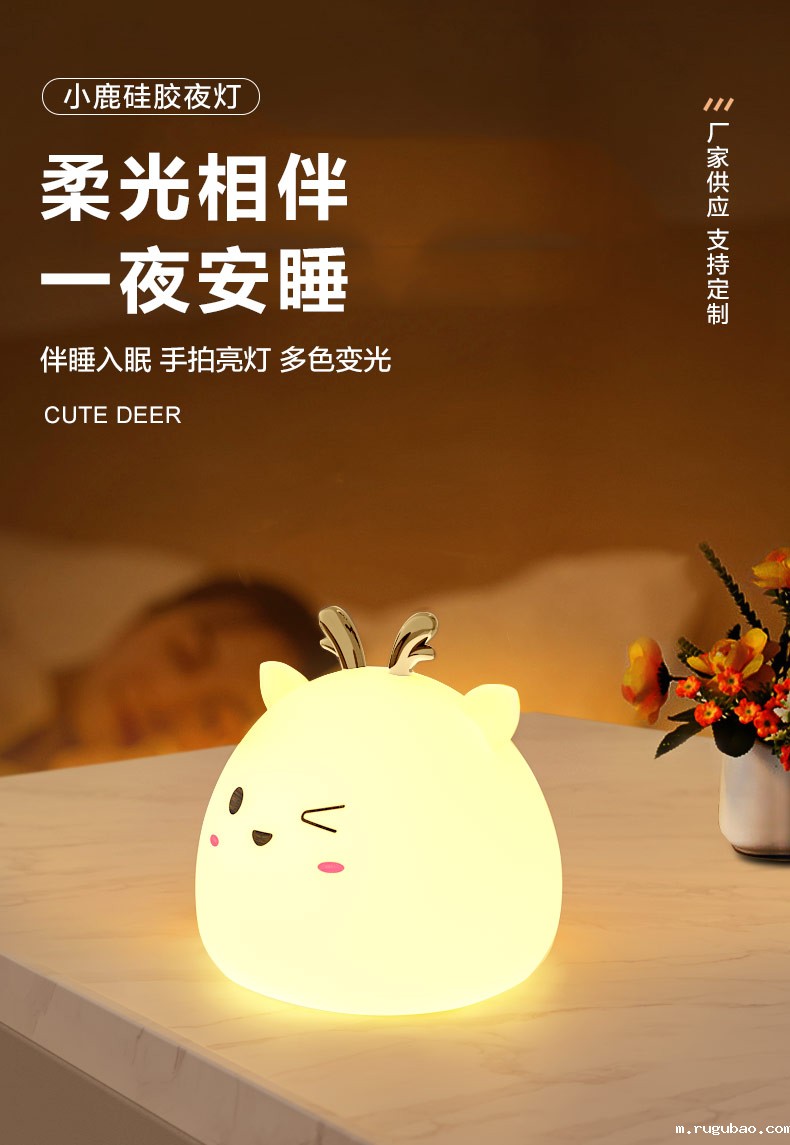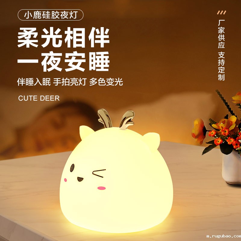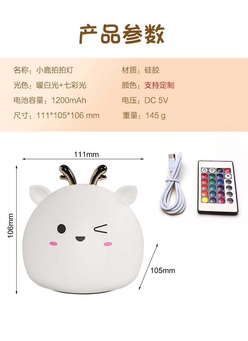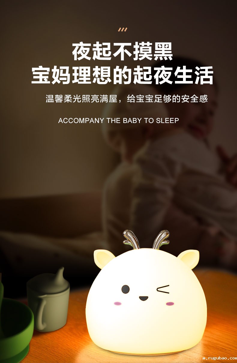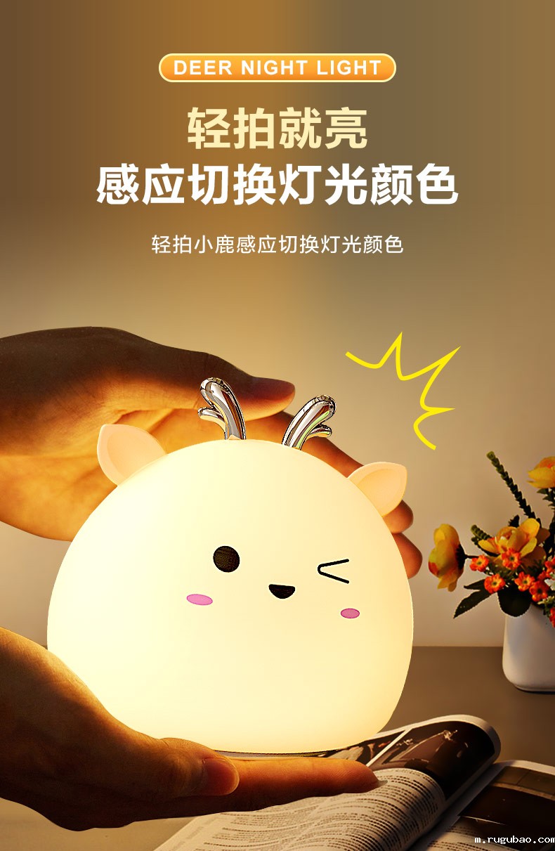 小鹿硅胶小夜灯 拍拍感应灯喂奶起夜灯
