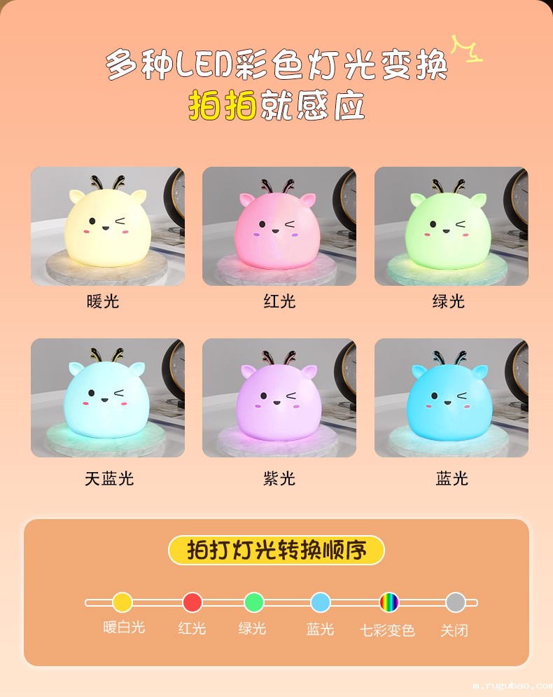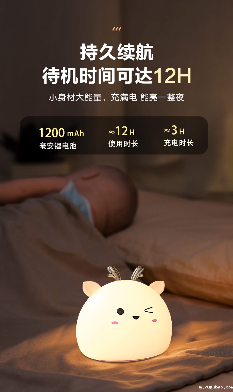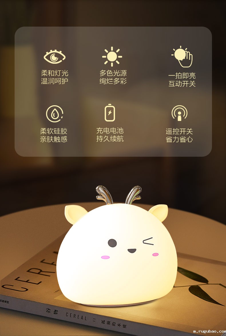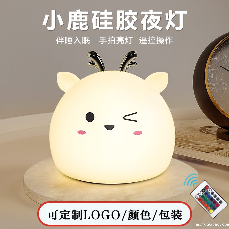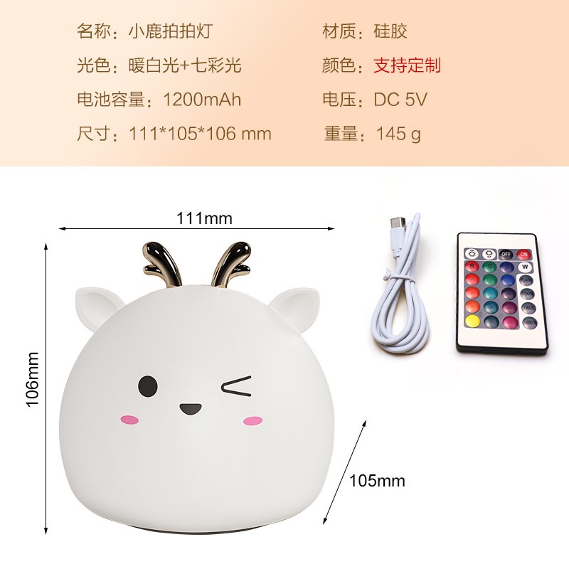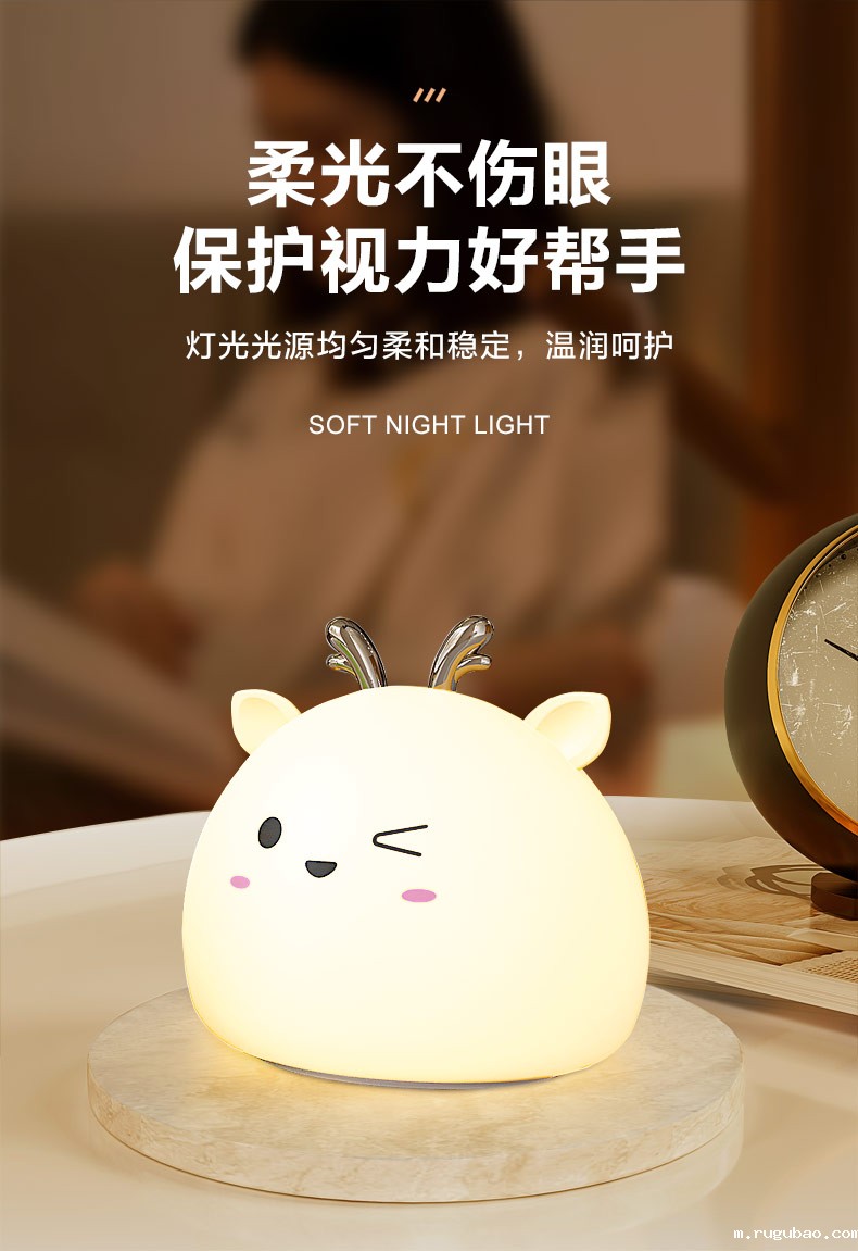 小鹿硅胶小夜灯 拍拍感应灯喂奶起夜灯