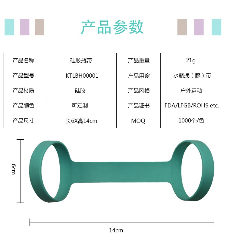 便携式硅胶瓶带,采用安全硅胶,无毒副作用。支持产品定制,可适用于各种水瓶。