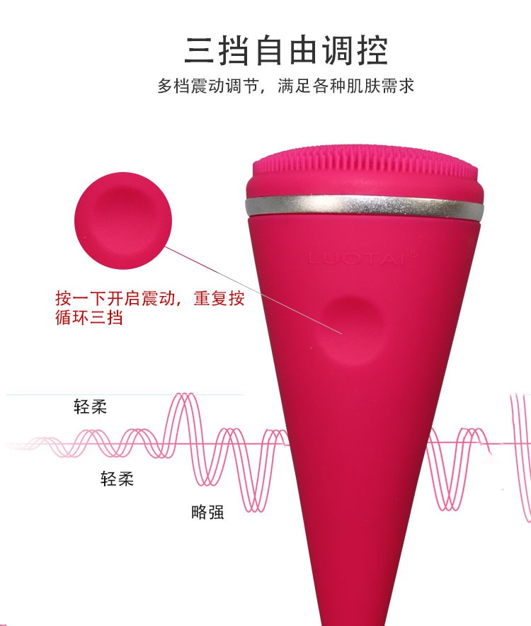圆锥形面部美容清洁仪多重震动模式可调节,深层清洁和按摩皮肤。