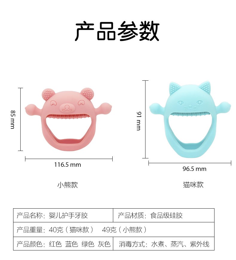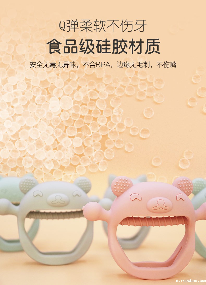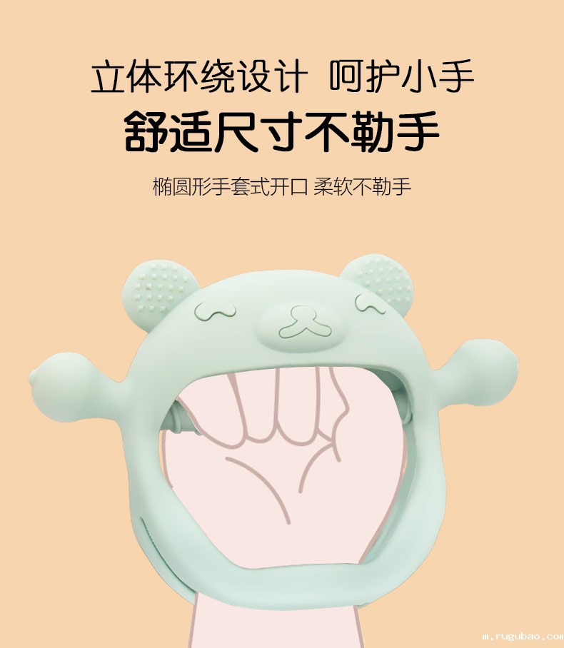 宝宝磨牙棒 婴儿手套硅胶牙胶 护手婴幼儿小熊婴儿牙胶