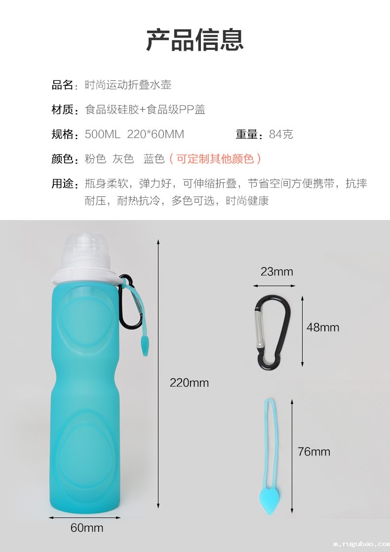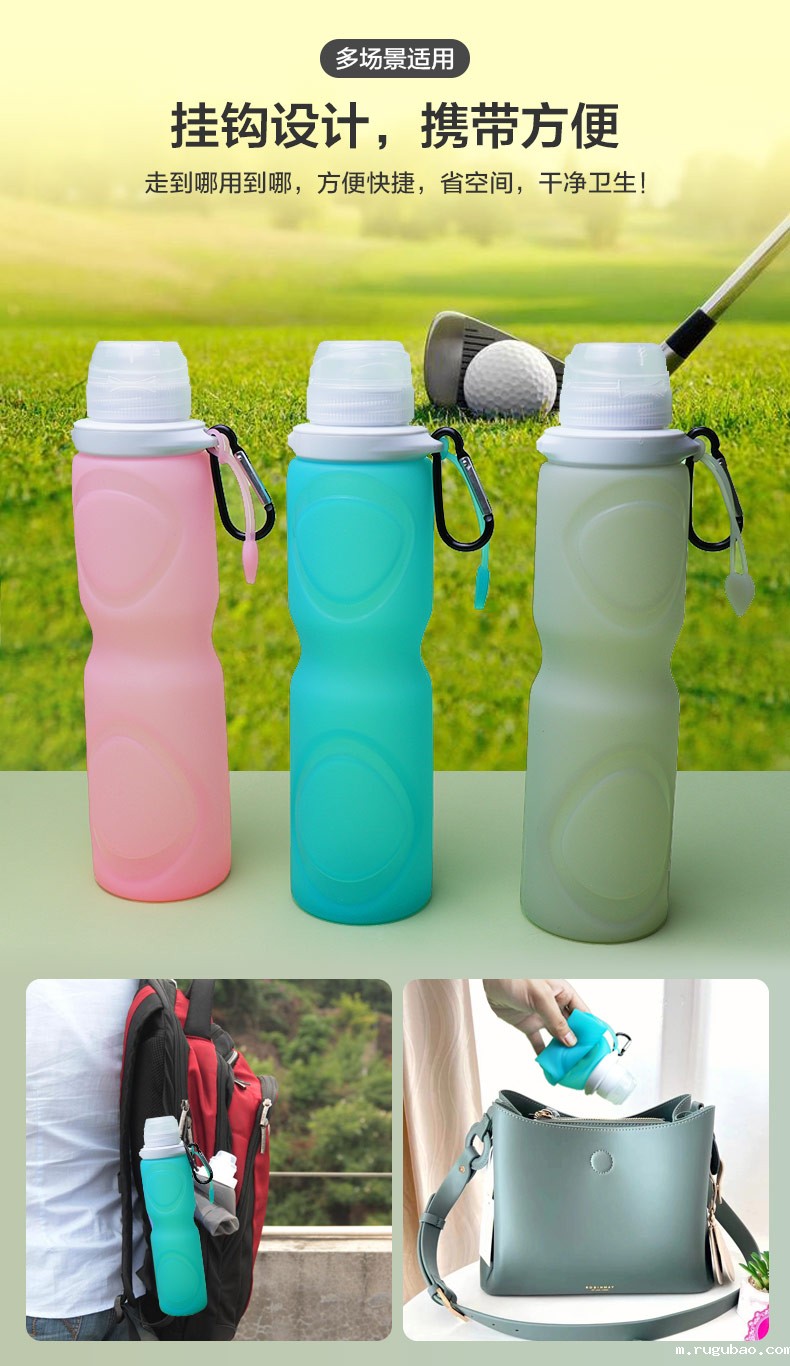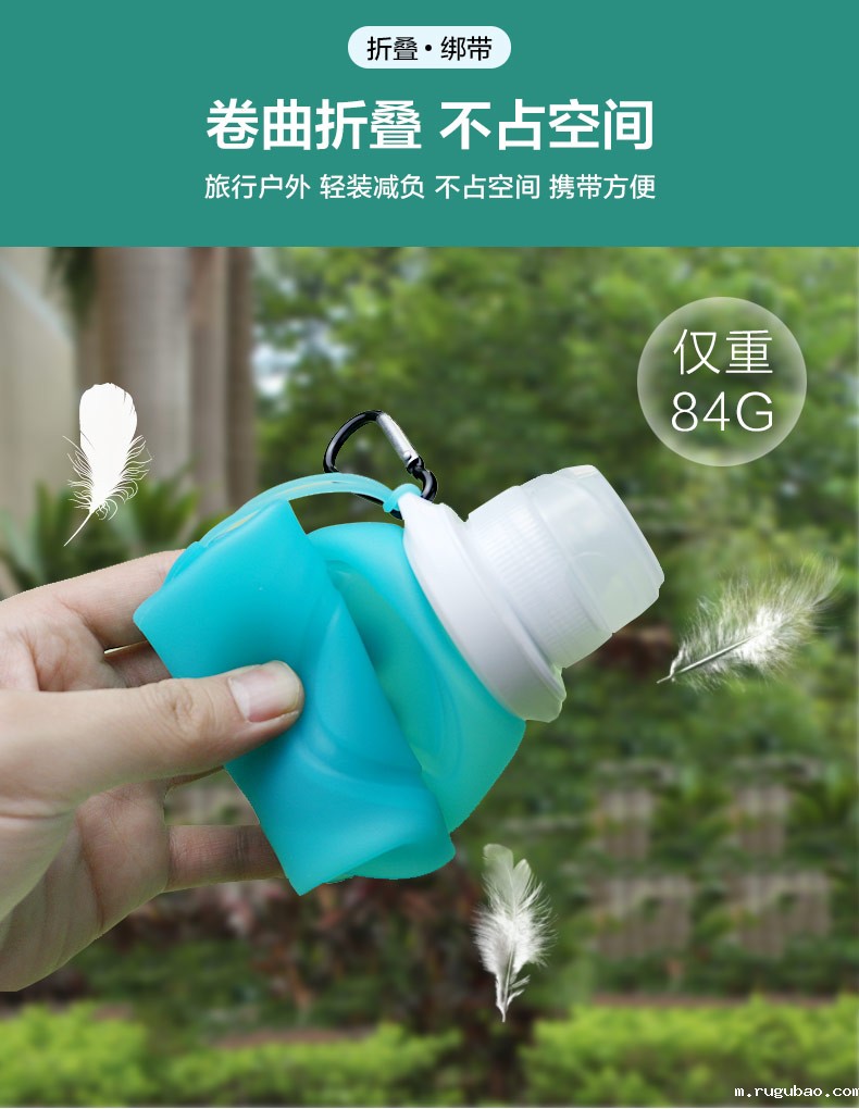 用途:瓶身柔软,弹力好,可伸缩折叠,节省空间方便携带,抗摔